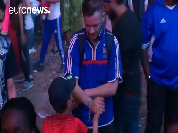UN ENFANT PORTANT LE MAILLOT DU PORTUGAL EST ALLÉ RÉCONFORTER ET CONSOLER UN SUPPORTER FRANÇAIS EN LARMES