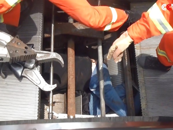 UN RÉPARATEUR A ÉTÉ LITTÉRALEMENT ENGLOUTI PAR UN ESCALATOR (CHINE)