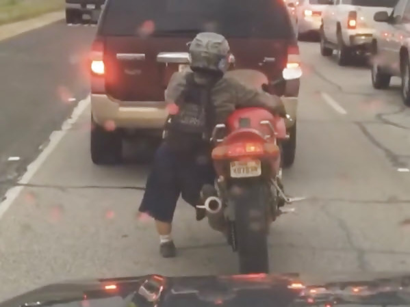 UN AUTOMOBILISTE S’EST RETROUVÉ DERRIÈRE UNE PERSONNE DE PETITE TAILLE QUI ROULAIT EN MOTO
