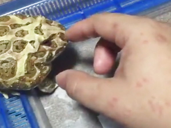 UN PETIT CRAPAUD SEMBLE ÊTRE EN COLÈRE CONTRE SON PROPRIÉTAIRE