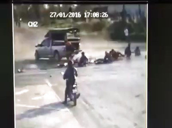TOUS LES PASSAGERS D’UN PICK-UP SONT ÉJECTÉS DE LEUR VÉHICULE APRÈS S’ÊTRE FAIT PERCUTER PAR UN CAMION (THAÏLANDE)