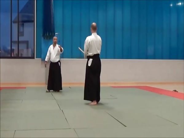 UN MAÎTRE MONTRE À SES ÉLÈVES COMMENT SE DÉFENDRE CONTRE UNE PERSONNE ARMÉE D'UNE ÉPÉE OU UN KATANA