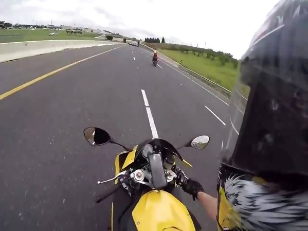 UN MOTARD FILME UNE MOTO EN TRAIN DE LE DOUBLER À PLUS DE 300 KM/H