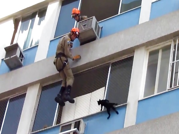 SAUVETAGE D'UN CHAT AU BORD D'UNE FENÊTRE