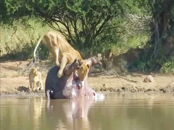 UNE LIONNE CROQUE UN HIPPOPOTAME MORT, ET SURPRISE!
