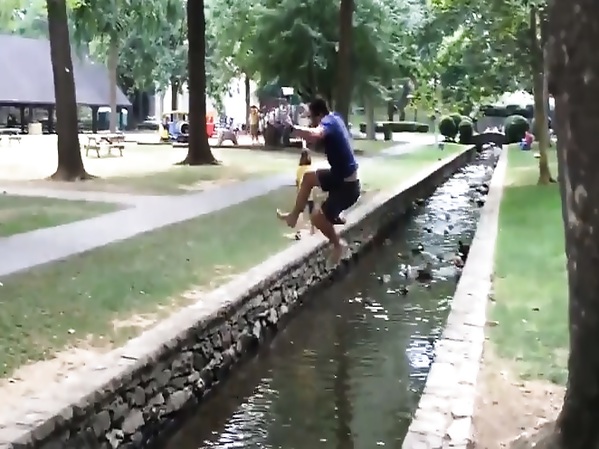 UN JEUNE A RELEVÉ LE CHALLENGE DE SAUTER AU DESSUS D’UNE RIVIÈRE