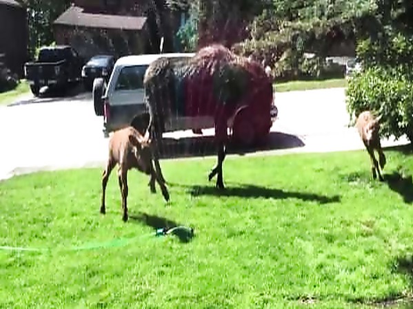 UNE FAMILLE D'ORIGNAUX S'EST INSTALLÉE SUR LA PELOUSE D'UN HABITANT POUR SE RAFRAÎCHIR