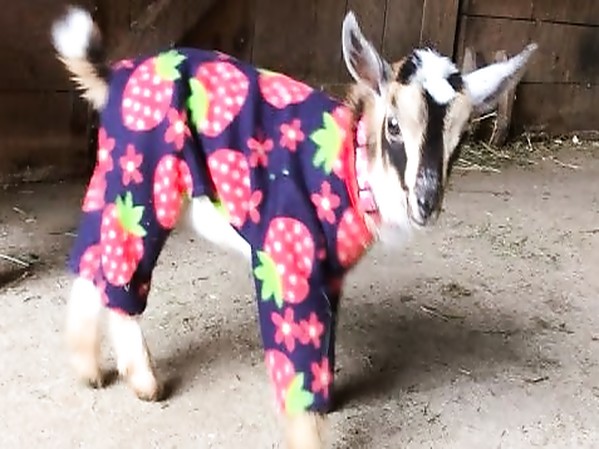 DES CHEVREAUX EN PYJAMA S'AMUSENT À FAIRE DES BONDS DANS UNE ÉTABLE (CUTE)