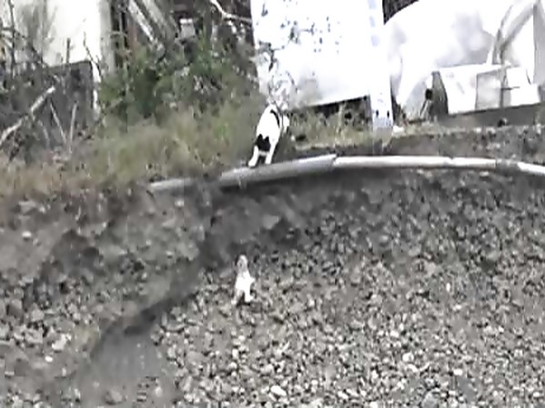 UN CHATON ESSAIE DE REJOINDRE SA MAMAN