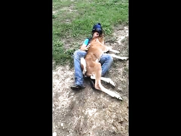 UN JEUNE POULAIN FAIT UN CÂLIN À UNE FILLE (FLORIDE)