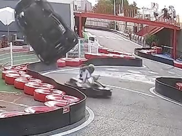 DEUX KARTS SE PERCUTENT, L'UN D'EUX S'ENVOLE (MADRID)