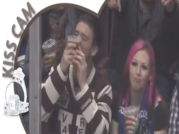 KISS CAM DE LA PATINOIRE S’EST ARRÊTÉ SUR UN HOMME QUI A PRÉFÉRÉ EMBRASSER SA BIÈRE PLUTÔT QUE SA COPINE