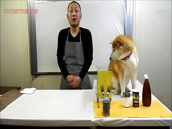 UN JAPONAIS ET SON ASSISTANT MARI, UN CHIEN DE RACE SHIBA, VONT NOUS APPRENDRE UNE RECETTE DE CUISINE