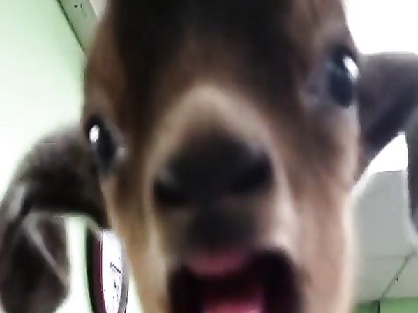 UN PETIT CHEVREAU BÊLE EN REMUANT SES PATTES AVANT DANS LES BRAS DE LA VÉTÉRINAIRE (CUTE)