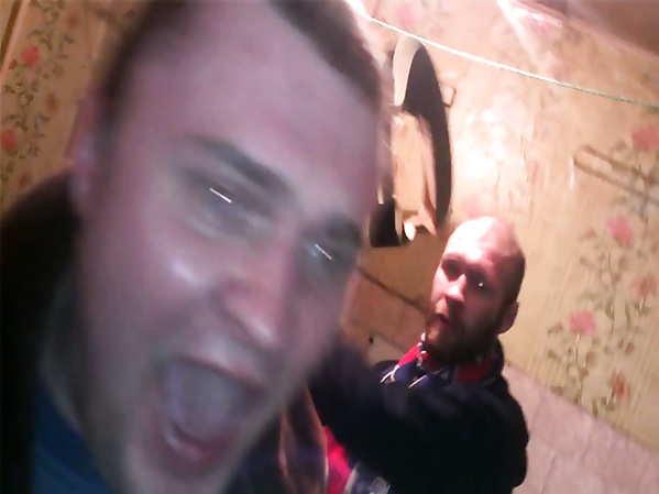 EN UKRAINE LORS D'UNE SOIRÉE ALCOOLISÉE, UN HOMME S'AMUSE À CASSER UNE GUITARE SÈCHE À LA FIGURE DE SON POTE
