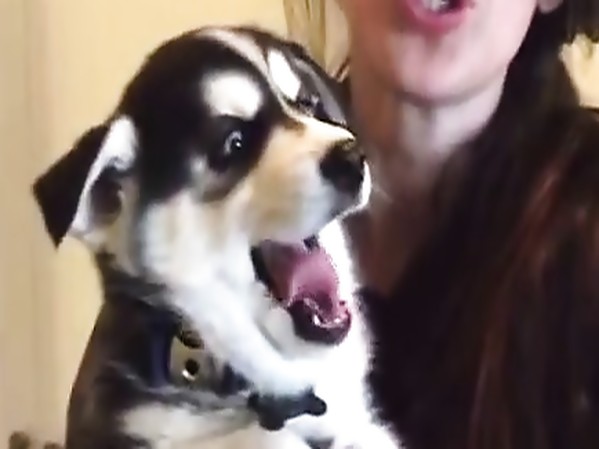UN CHIOT DE RACE HUSKY DONNE L'IMPRESSION DE VOULOIR PARLER