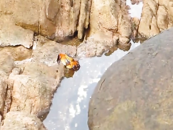 UN CRABE SE FAIT ATTAQUER PAR UN POULPE QUI SURGIT DE L'EAU AVEC UNE EXTRÊME RAPIDITÉ