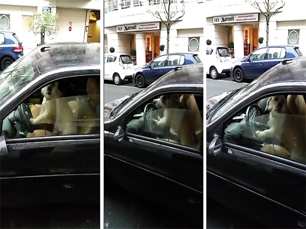 CHIEN COINCÉ DANS UNE VOITURE KLAXONNE