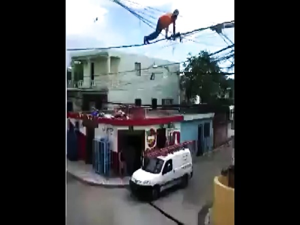 HOMME COMPLÈTEMENT FOU FAIT DES POMPES SUR DES LIGNES TÉLÉPHONIQUE