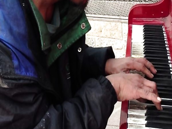 RYAN, UN SDF QUI A VÉCU 30 ANS DANS LA RUE, JOUE DU PIANO DANS LE SQUARE CHURCHILL DANS LE CENTRE-VILLE D'EDMONTON AU CANADA