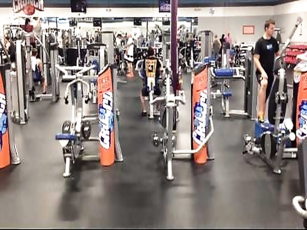 PENDANT CE TEMPS-LÀ DANS UNE SALLE DE GYM, UNE FEMME TIRE UN HOMME...