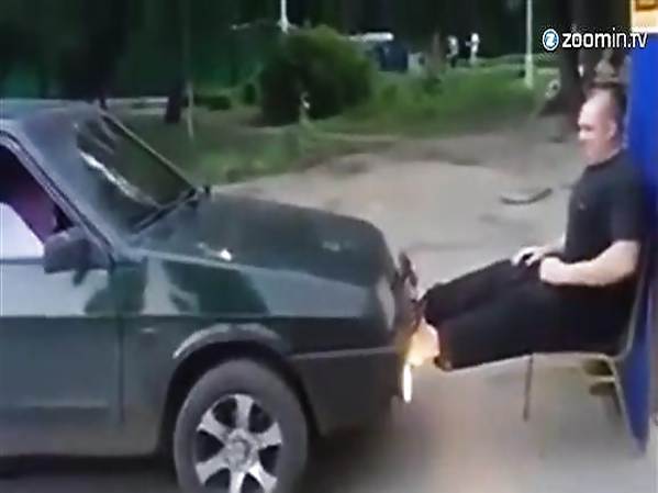 IL RETIENT UNE VOITURE AVEC SES JAMBES