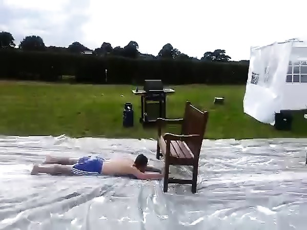 IL FAIT UNE GLISSADE AU SOL ET SE PREND UN BANC
