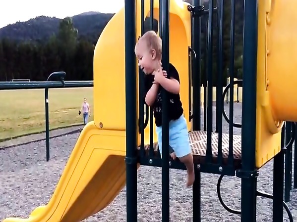 NATHAN FAIT UNE JOLIE CHUTE EN UTILISANT UNE BARRE DE POMPIER POUR DESCENDRE D'UN TOBOGGAN