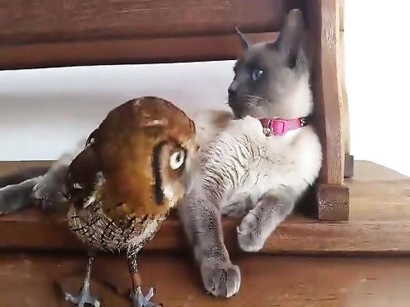 L'AMITIÉ ENTRE UN CHAT ET UN HIBOU (CUTE)