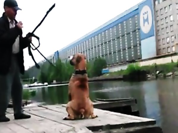 ABRUTI JETTE UN BATON À SON CHIEN ET TOMBE DANS L'EAU