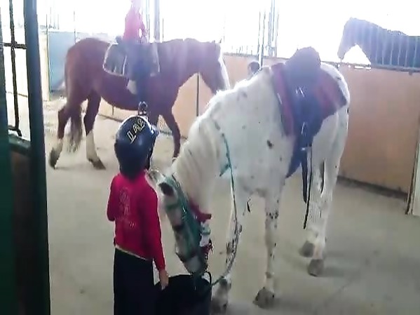 ENFANT NOUS MONTRE SA TECHNIQUE POUR MONTER SEUL SUR UN CHEVAL TROP HAUT