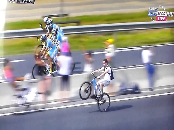 CYCLISTE DOUBLE LE VAINQUEUR DU TOUR DE FRANCE EN WHEELING
