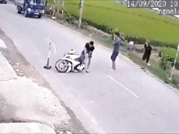 LE FREINAGE BRUSQUE DE CE MOTARD LUI SAUVE LA VIE