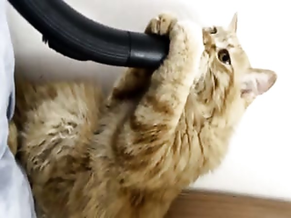 CHAT S'AMUSE AVEC UN TUYAU D'ASPIRATEUR