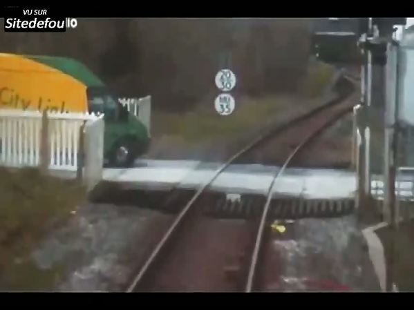 CHAUFFEUR D'UNE CAMIONNETTE PASSE TRÈS PRÈS DE SE FAIRE PERCUTER PAR UN TRAIN