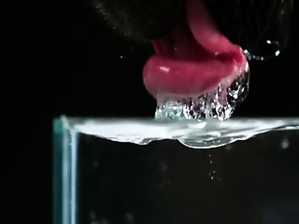 UN CHIEN BOIT DE L'EAU AU RALENTIT