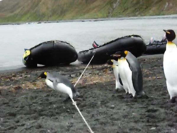 MANCHOTS BIEN EMBÊTÉS PAR UNE CORDE