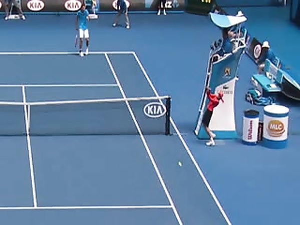 UN RAMASSEUR DE BALLE PREND CHER LORS D'UN MATCH D'OPEN D'AUSTRALIE