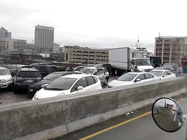 ENORME CARAMBOLAGE À WORCESTER AUX ÉTATS-UNIS À CAUSE DU VERGLAS (65 VOITURES ACCIDENTÉES)