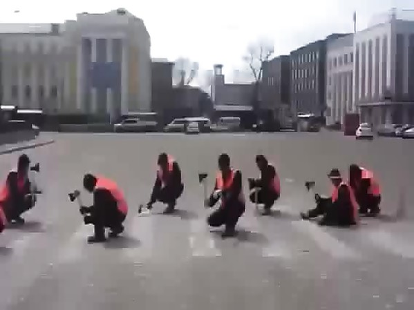 JUSTE DES CHINOIS ENTRAIN D'EFFACER LES MARQUES D'UN PASSAGE PIÉTON SUR LA ROUTE