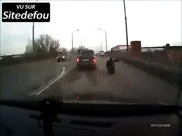 UN HOMME SORT DE NULLE PART LORS D'UN ACCIDENT EN RUSSIE