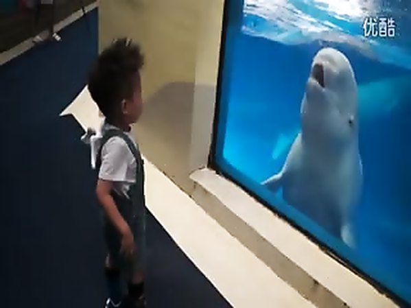 UN BÉLUGA ÉCLABOUSSE UN ENFANT DANS UN AQUARIUM