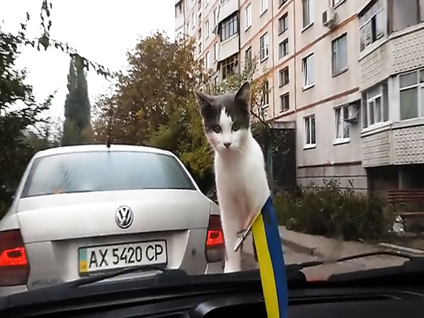 UN CHAT JOUE À FAIRE PEUR AUX VOITURES