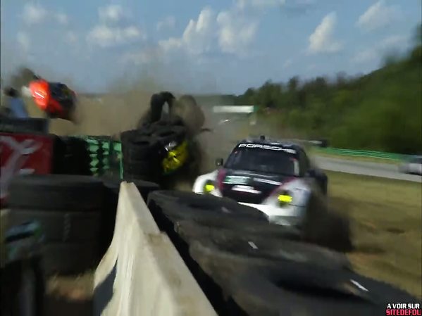 COLLISION À COTÉ DU CAMÉRAMAN ENTRE DEUX PORSCHES LORS DE LA COURSE L'AMERICAN LE MANS SERIES