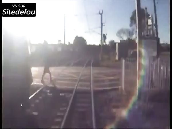 PIÉTON MANQUE DE PEU DE SE FAIRE ÉCRASER PAR UN TRAIN