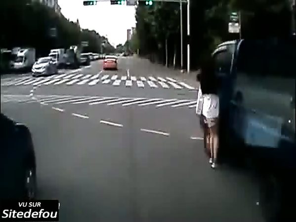 PIÉTONNE AU TÉLÉPHONE TRAVERSE N'IMPORTE COMMENT ET MANQUE DE SE FAIRE ÉCRASER