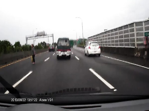 PIÉTONNE CAUSE UNE CARAMBOLAGE EN RESTANT AU MILIEU D'UNE VOIE RAPIDE