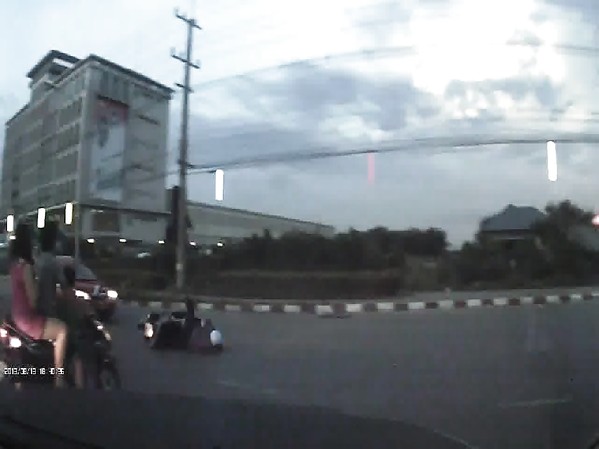 SCOOTERISTE TOMBE SUR LA ROUTE AVANT DE SE FAIRE PERCUTER