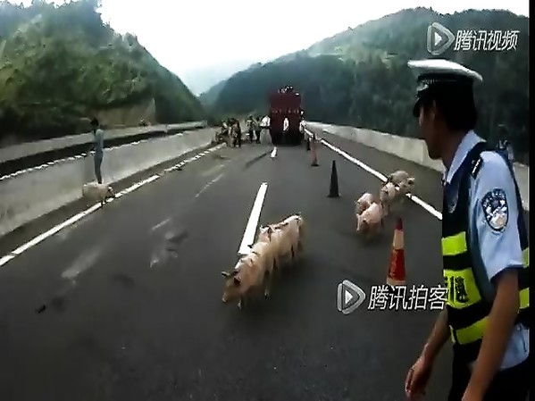 DES COCHONS COURENT SUR UNE VOIE RAPIDE APRÈS UN ACCIDENT