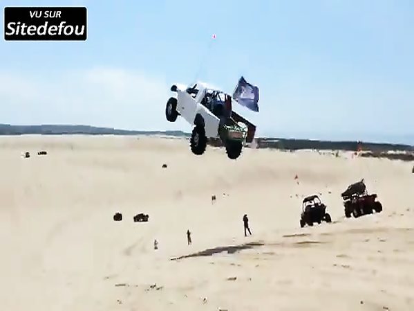PICK UP FAIT UN SAUT DE FOLIE DANS LES DUNES DE SABLE ET SE CRASHE VIOLEMMENT À L'ARRIVÉE